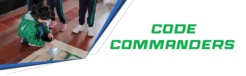 Equipo de dos estudiantes que programan y conducen un robot para resolver diferentes retos en pista. Para estudiantes de 2° y 3° de primaria.